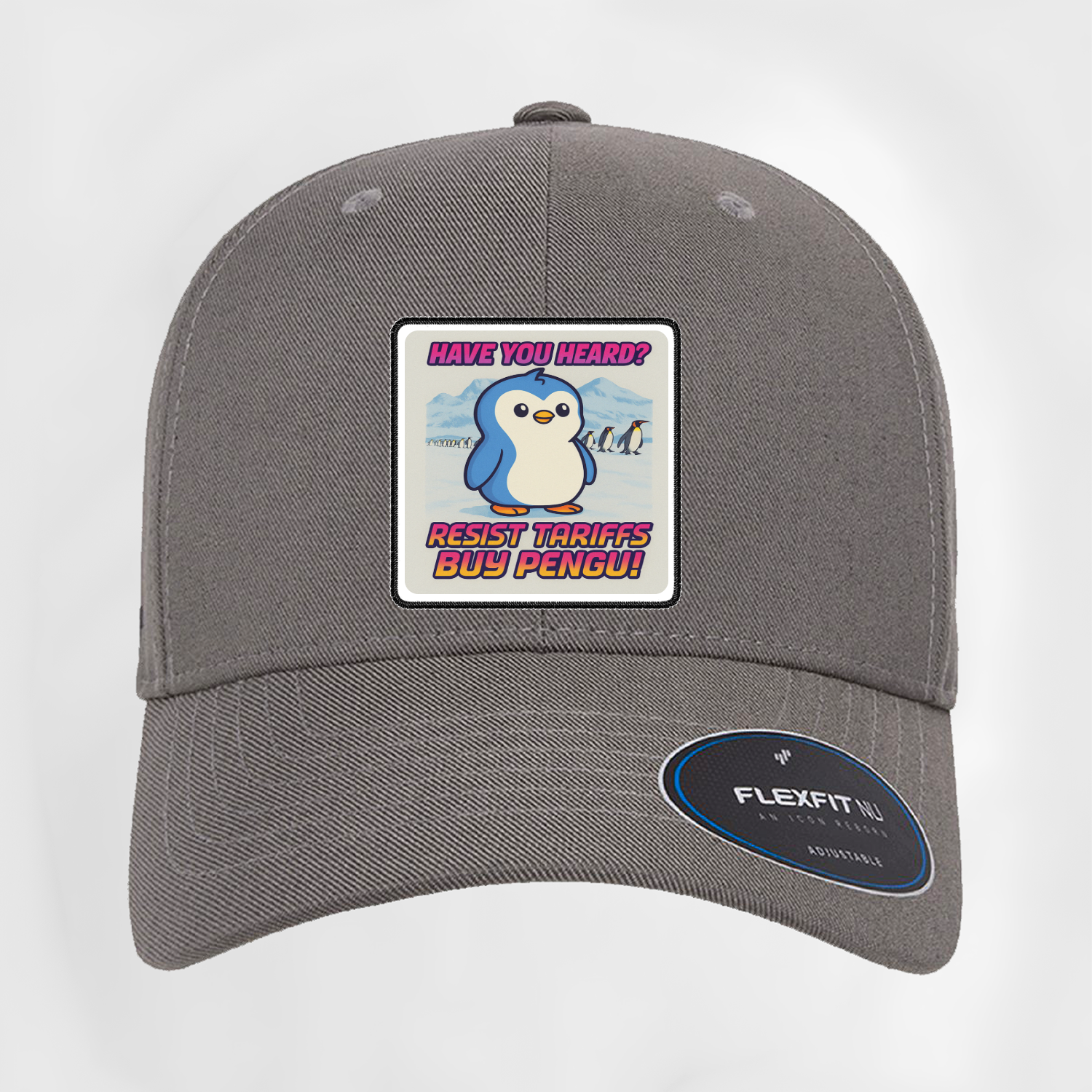 Have You Heard? Resist Tariffs Buy PENGU! Curved Patch Hat. Available in black or grey and is one size fits all heads. Ask Donald Trump "Why are the Heard and McDonald Islands, in Antartica, which don't export to the U.S. and are quite literally inhabited by penguins, why do they face 10% tariffs? Topical humorous crypto hat. Ideal for the PENGU hodlers and degens.