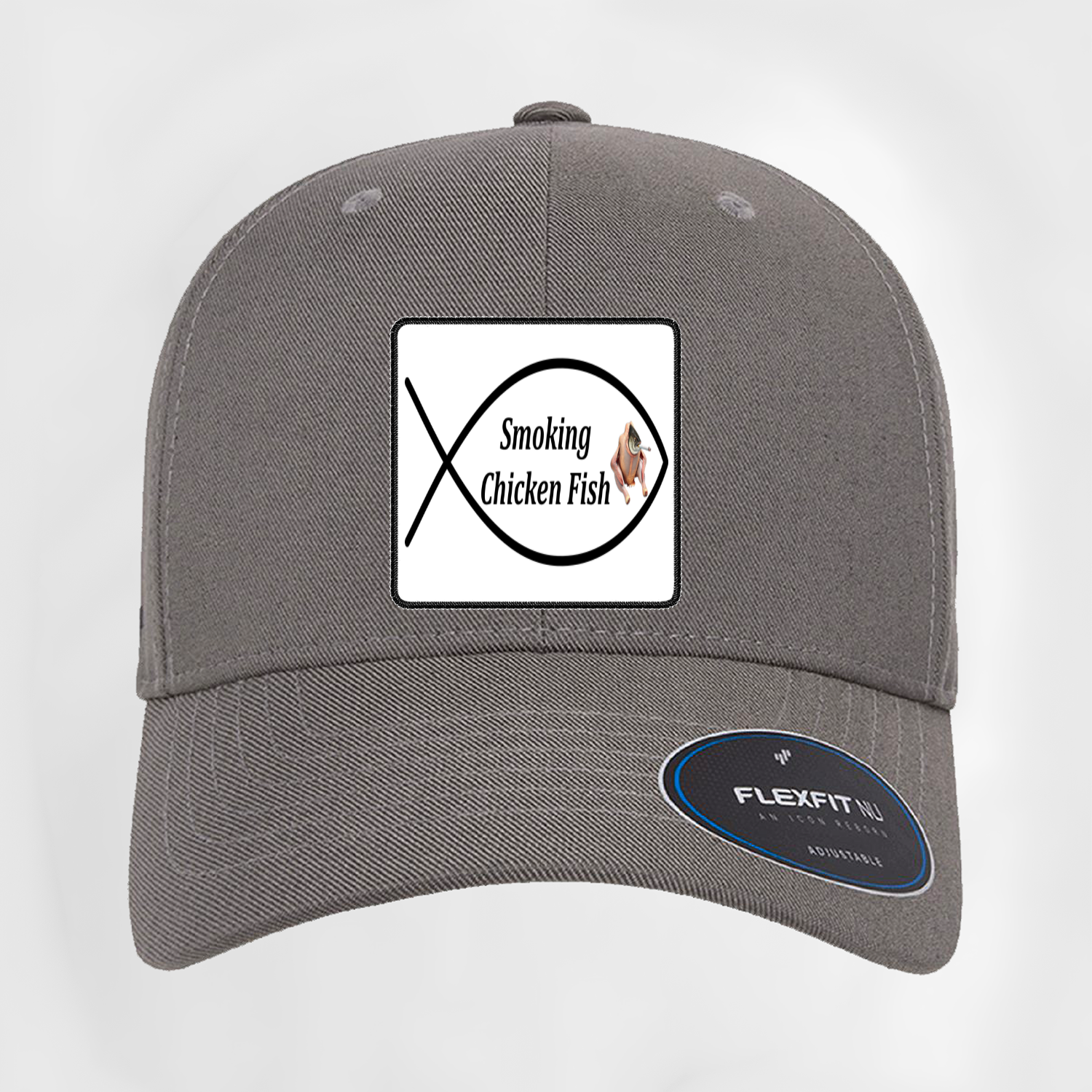 Smoking Chicken Fish Curved Patch Hat. Available in black & grey with one size fits all.