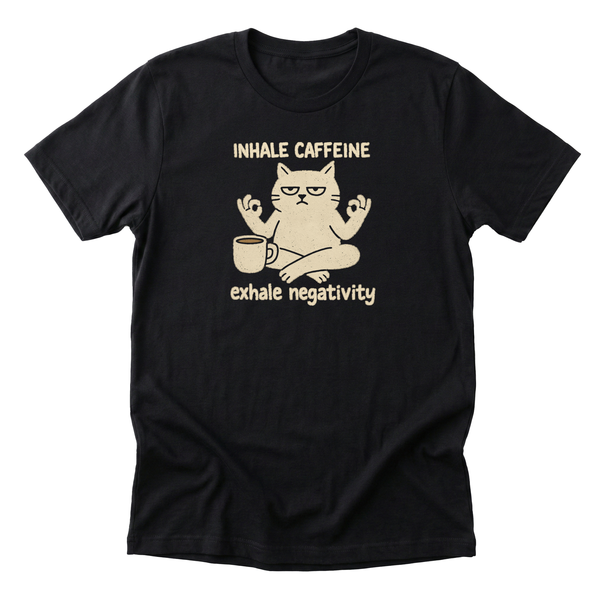 This cat has achieved inner peace through caffeine. Inhale the coffee, exhale everything else. It's basically yoga but useful.