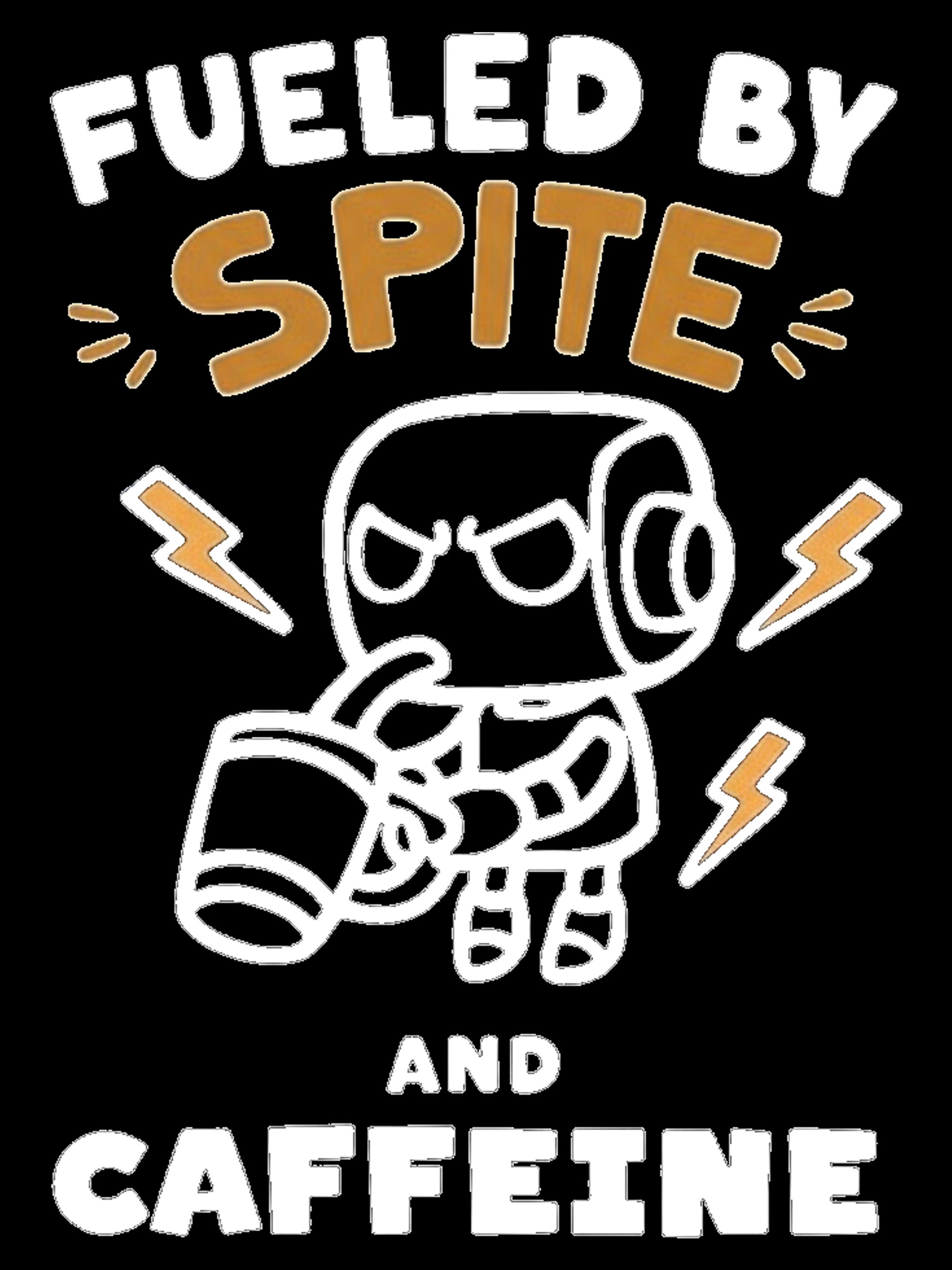 Fueled By Spite Caffeine Tee. I run on electricity, you run on spite and caffeine. We're not so different. Next Level 6410 tee.