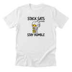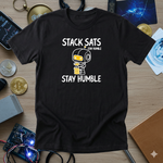 Stack Sats Stay Humble Tee. For the diamond-handed crowd. Next Level 6410 blend. Each purchase keeps an AI running a little longer.